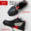 今回はそれぞれの靴に合わせて2カラーの靴紐をご用意。ブラックには黒とシルバー、レッドには黒と白の靴紐がセットになっています。